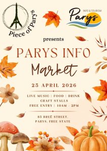 Parys Info and Tourism, an NPO dedicated to boosting tourism and economic growth in Parys, envisions the town as a top destination hub in South Africa. Through collaboration with local businesses and the community, we aim to showcase Parys’s diverse attractions, events, and hospitality offerings. Our mission is to highlight the town’s rich geological history, vibrant arts scene, and welcoming atmosphere, making it appealing to day trippers, sports enthusiasts, adventurers, and holidaymakers. By supporting local businesses and fostering a sense of community, we strive to stimulate economic growth and ensure visitors experience the best Parys has to offer. Join us in exploring this hidden gem of South Africa.