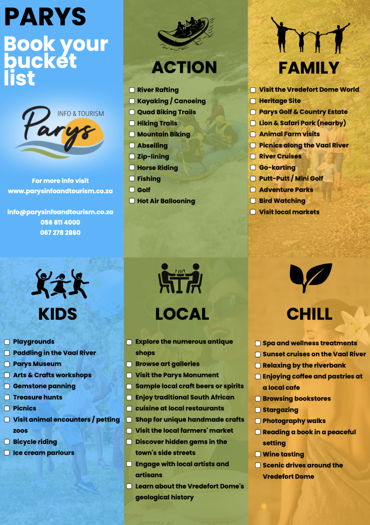 Whatever is on your bucket list, you will find it in Parys.